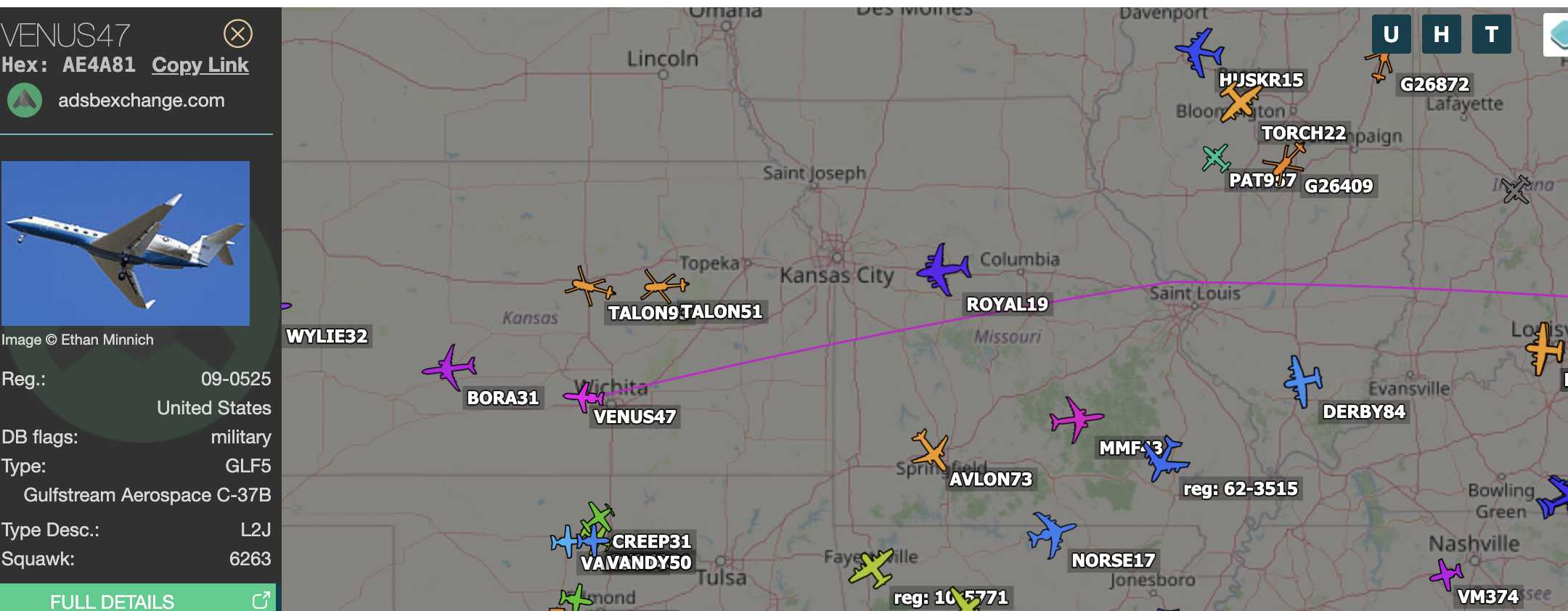 VENUS47 heading W out of Andrews.