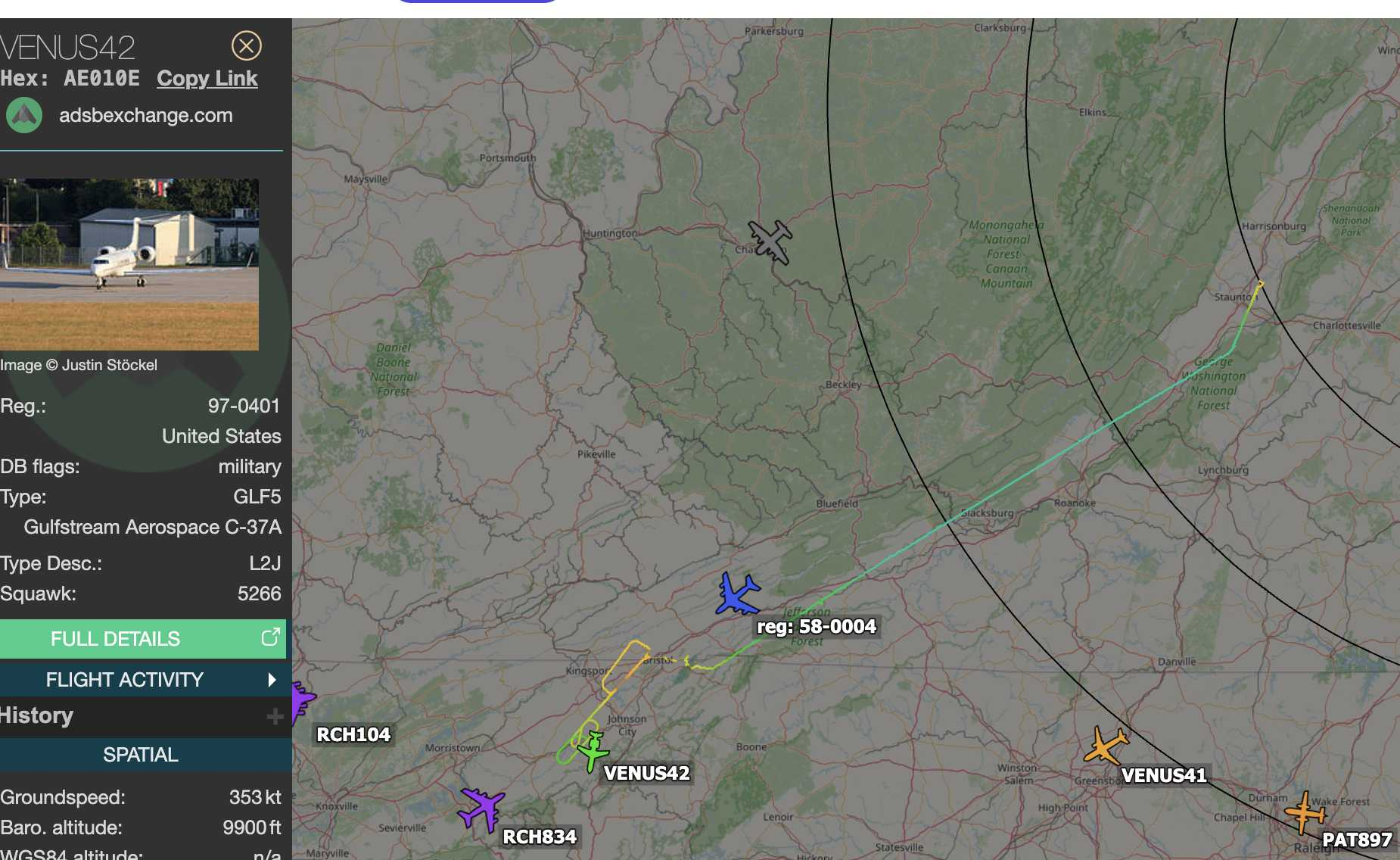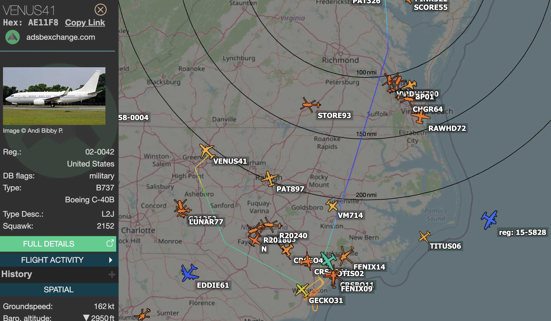 VENUS41 landing practice at Wilmington out of Andrews. Now heading into Greensboro NC.