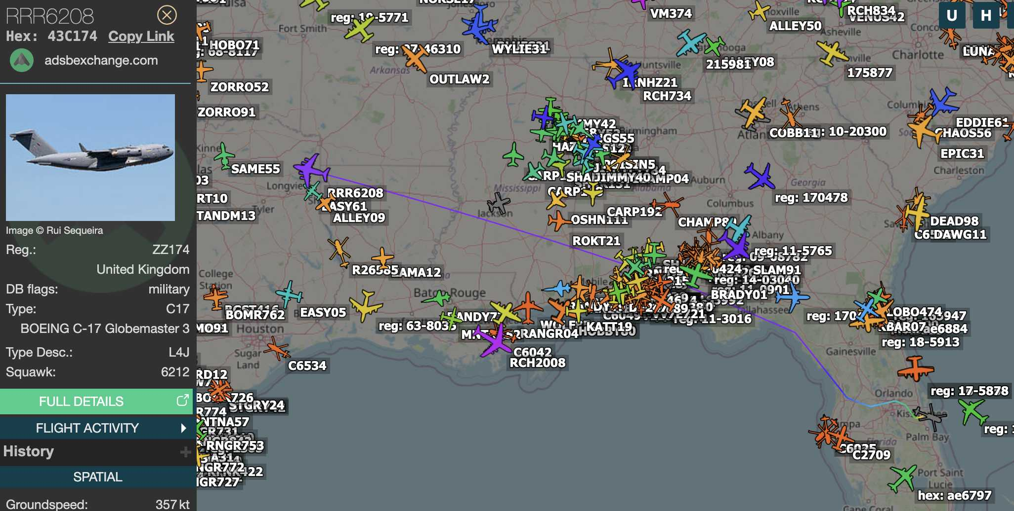 UK Globemaster heading NW out of Patrick SFB, FL.