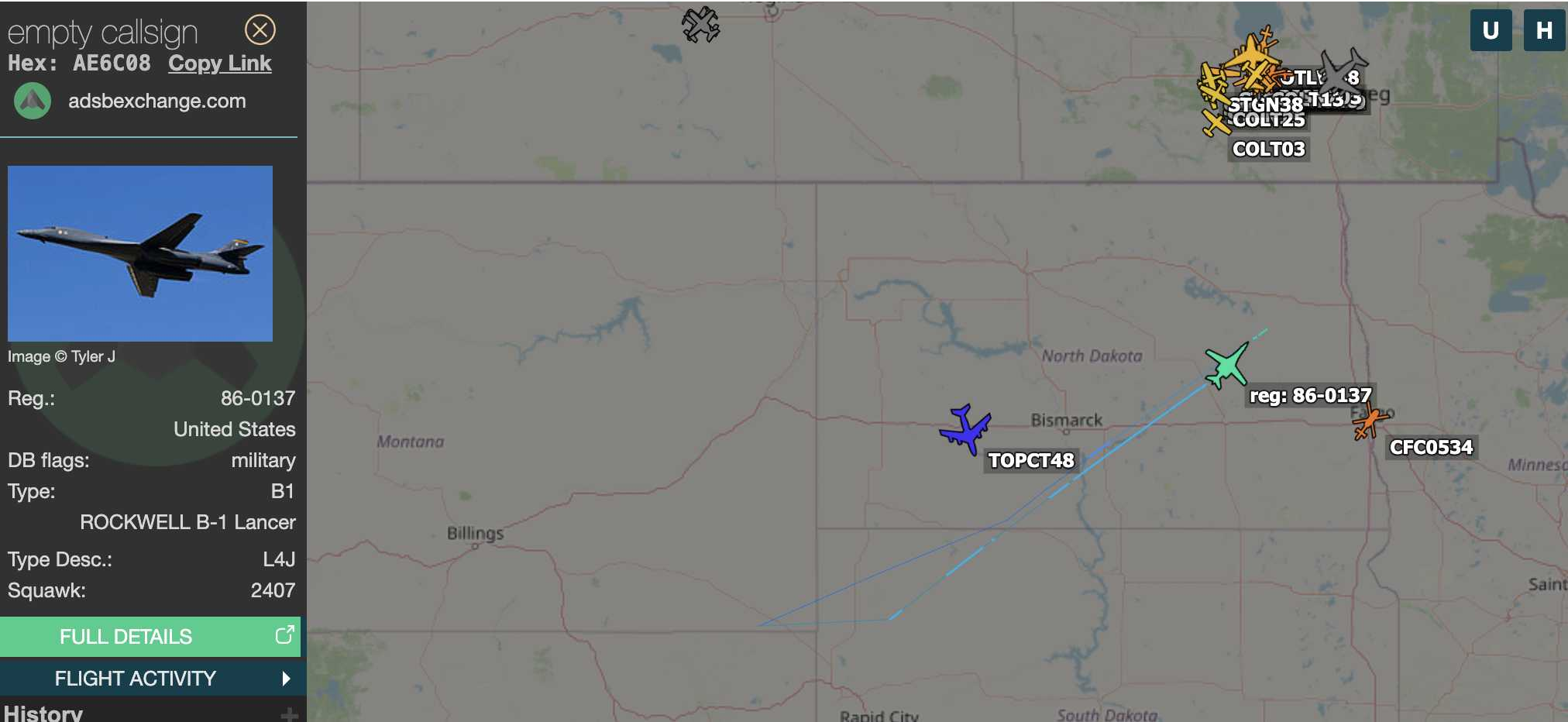 B-1 Lancer up over ND.