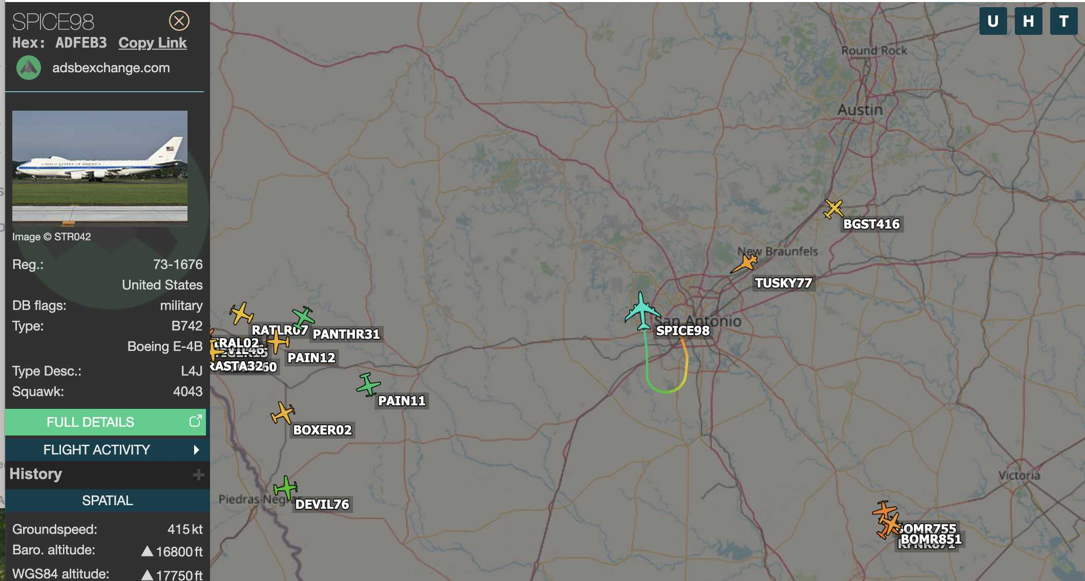 SPICE98 Doomsday up out of Lackland AFB TX heading NW.