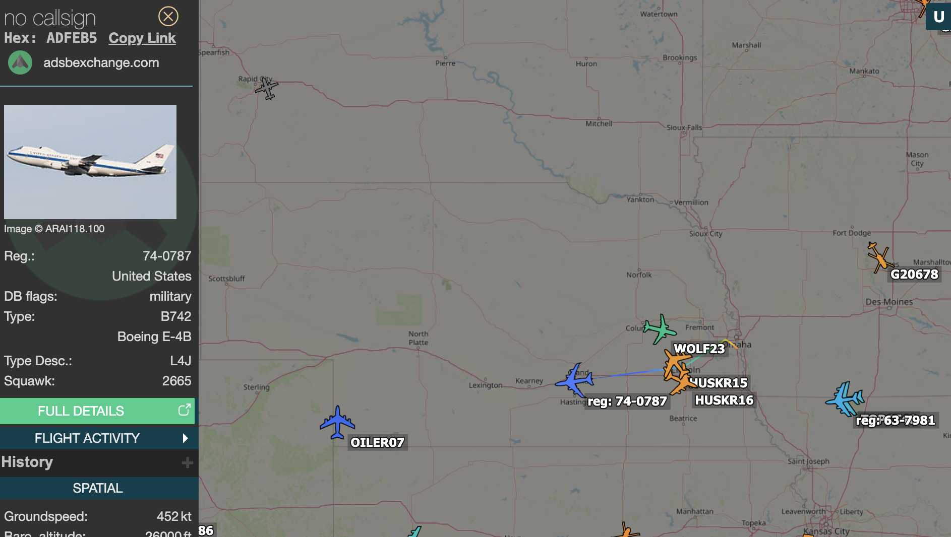 Doomsday heading SW out of Offutt AFB.