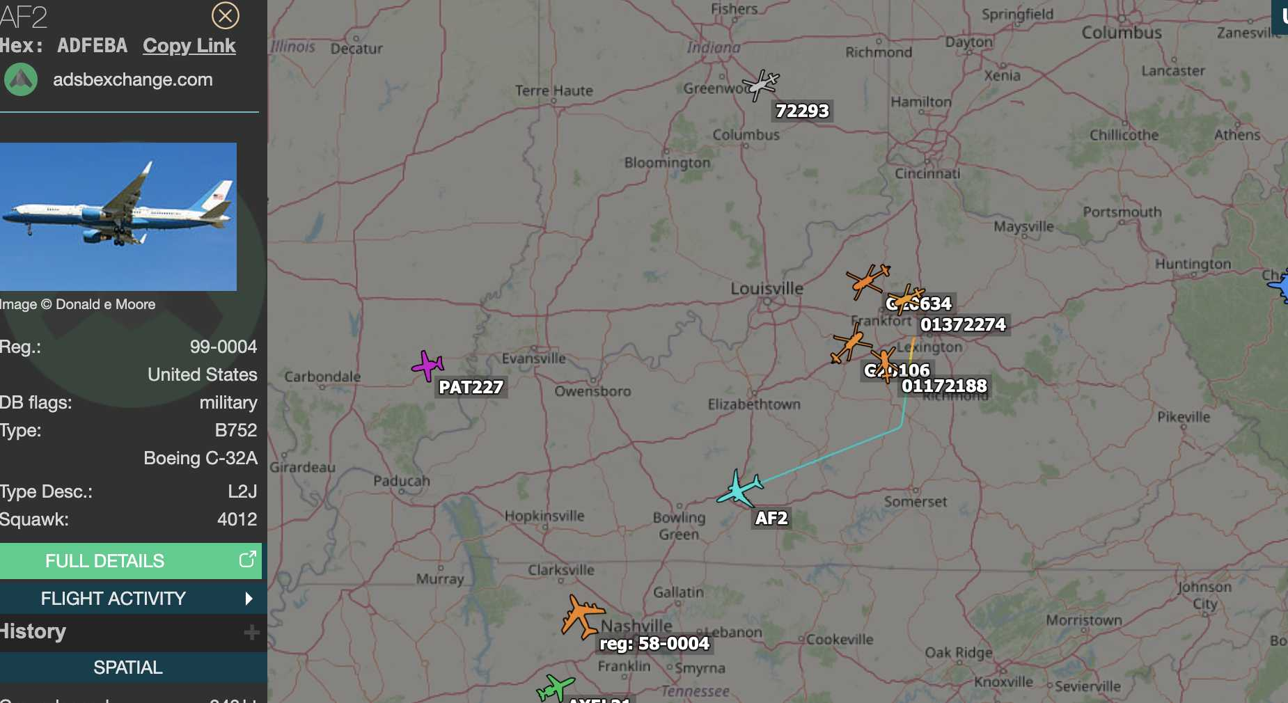 AF2 heading SW out of Lexington KY.