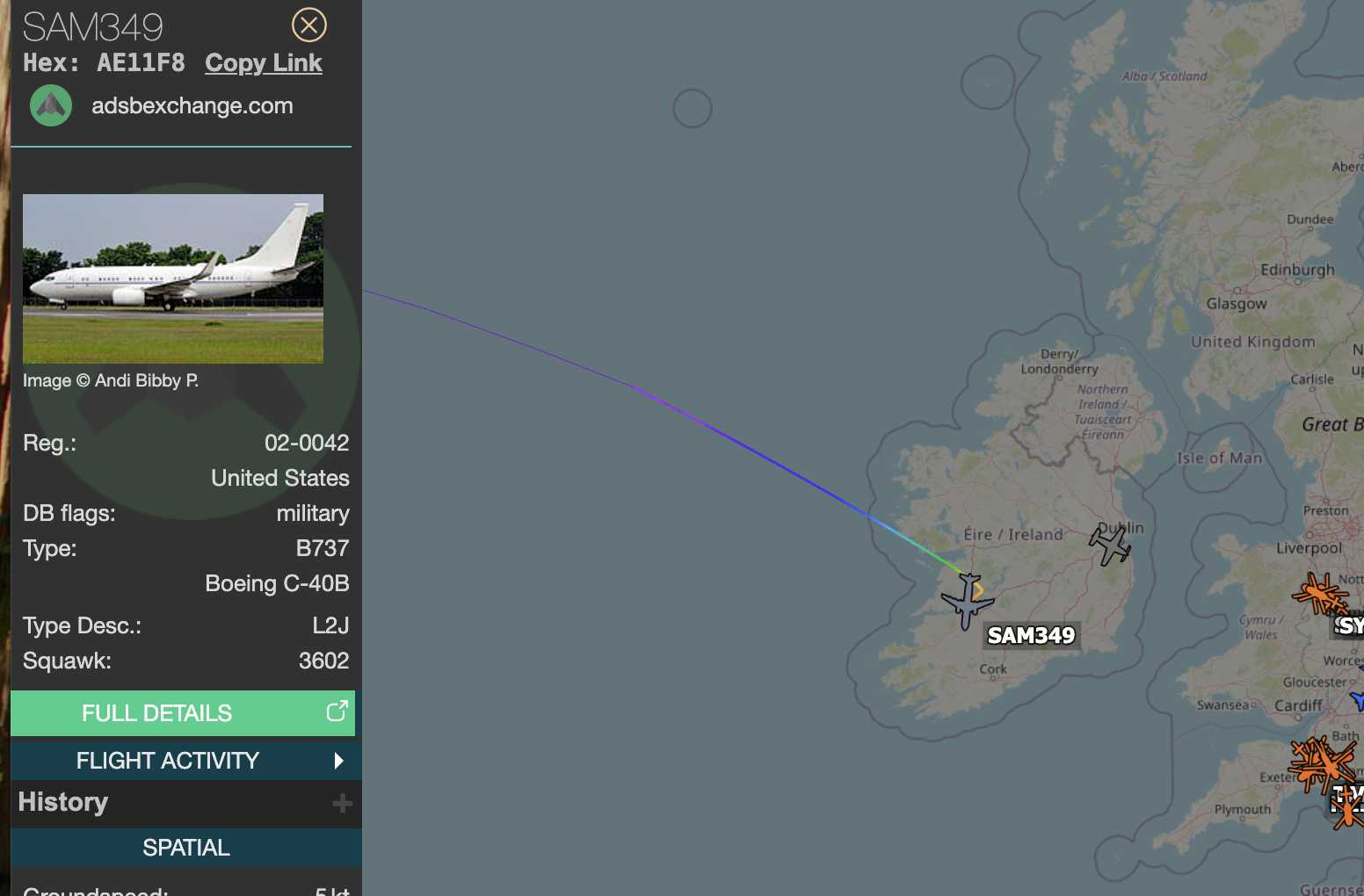 SAM349 landing in Ireland.