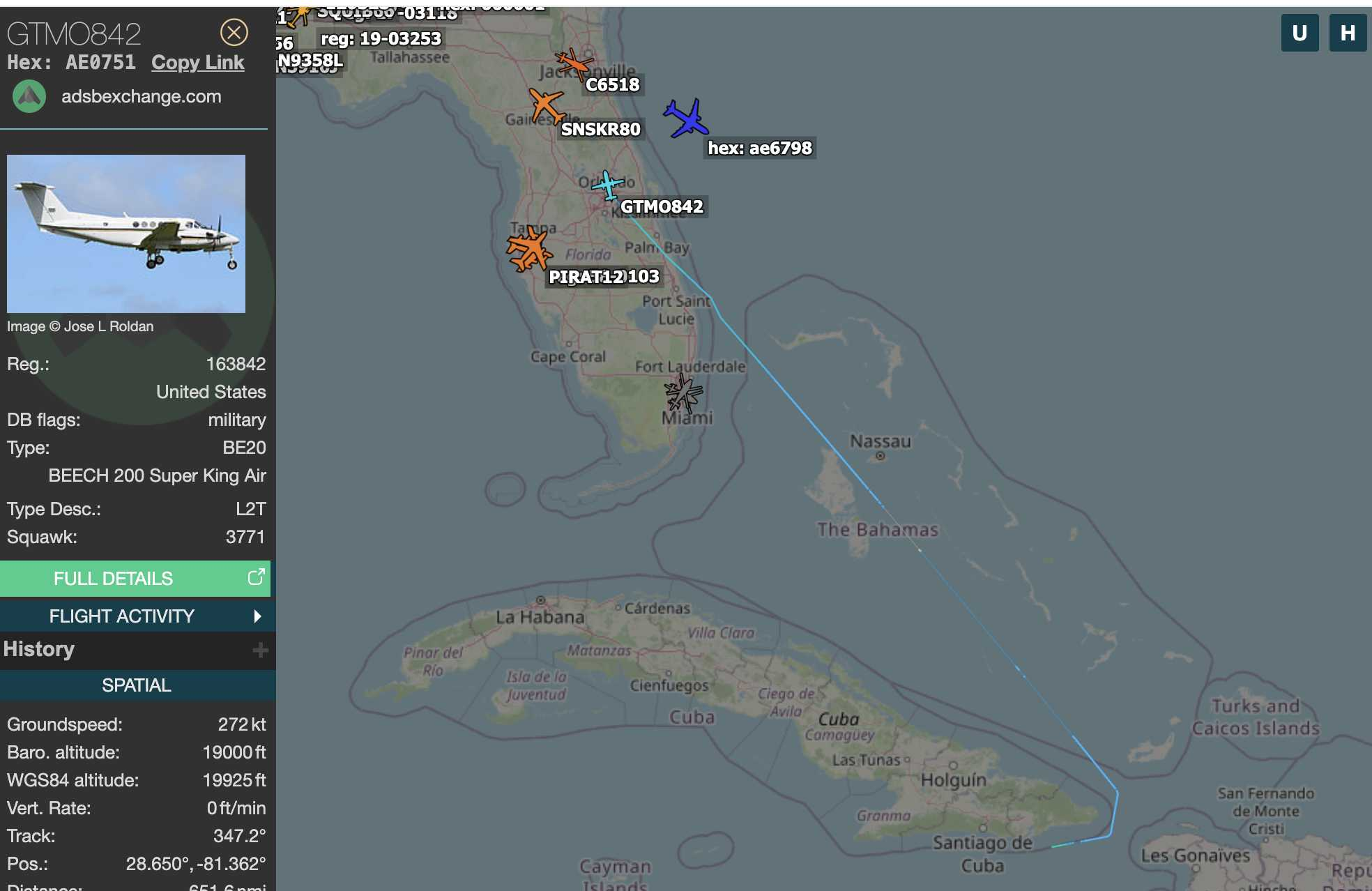 GTMO842 heading N through FL.