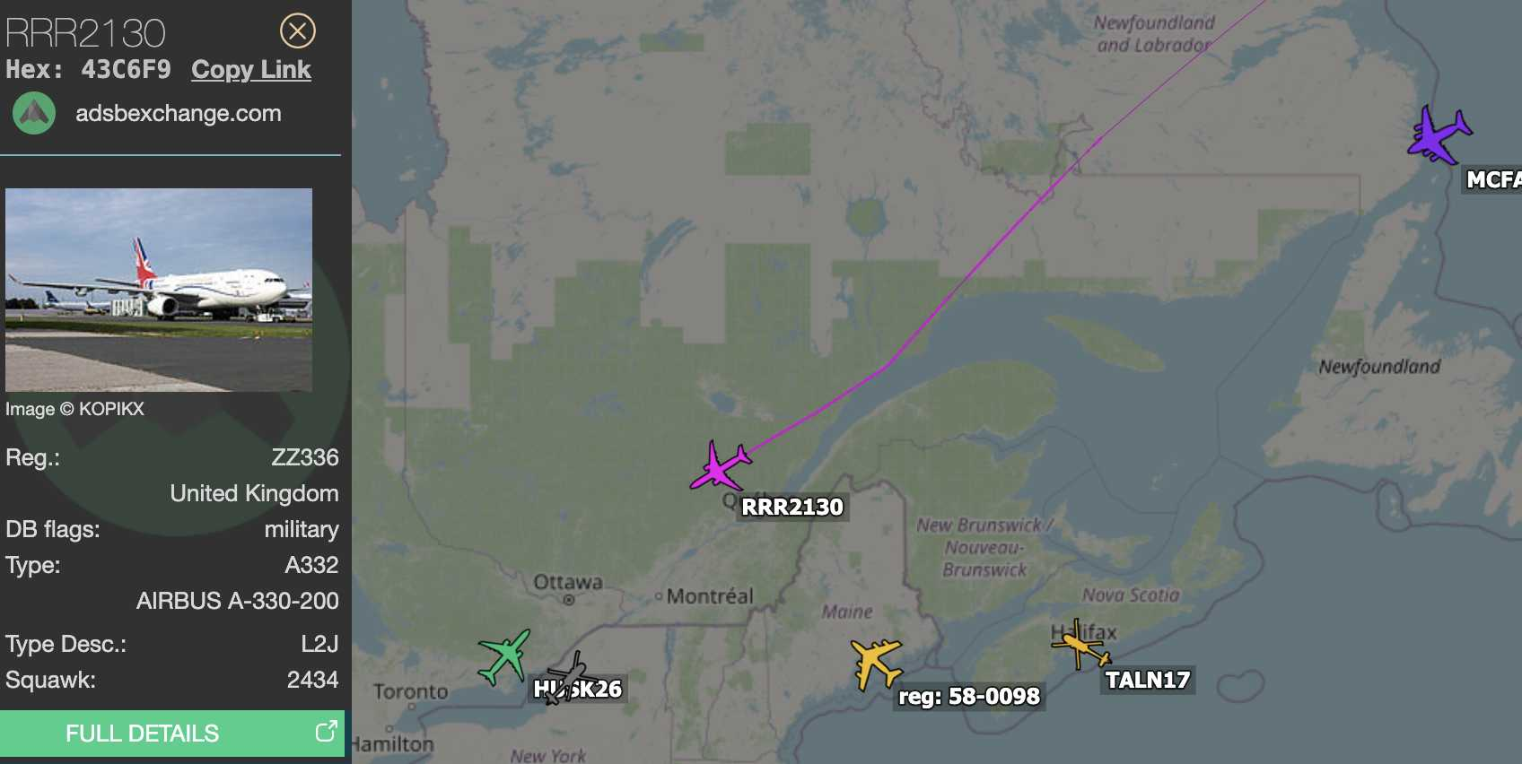 UK Airbus heading into Canada.
