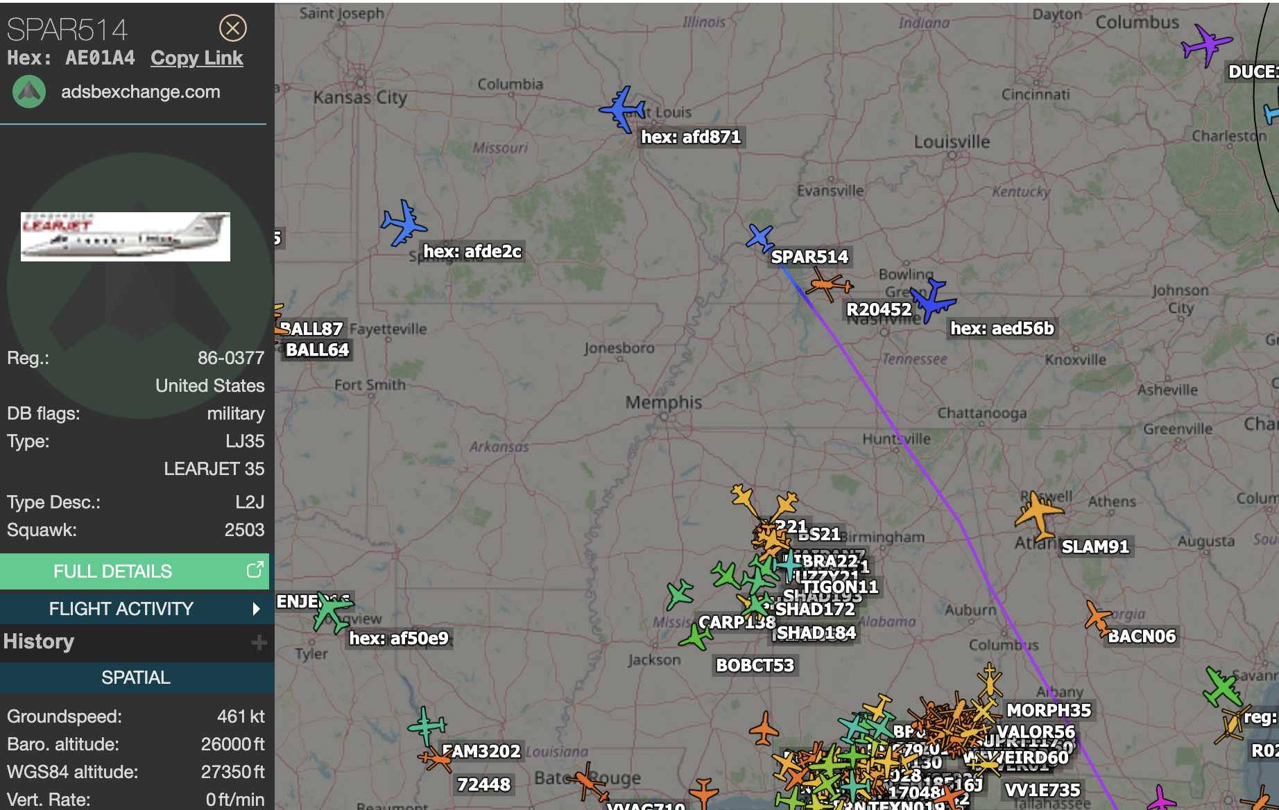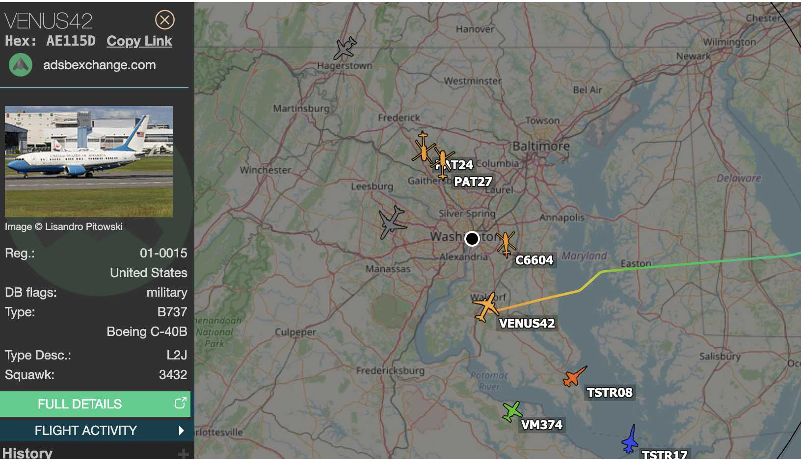 VENUS42 heading into Andrews out of Wright Patterson AFB OH.