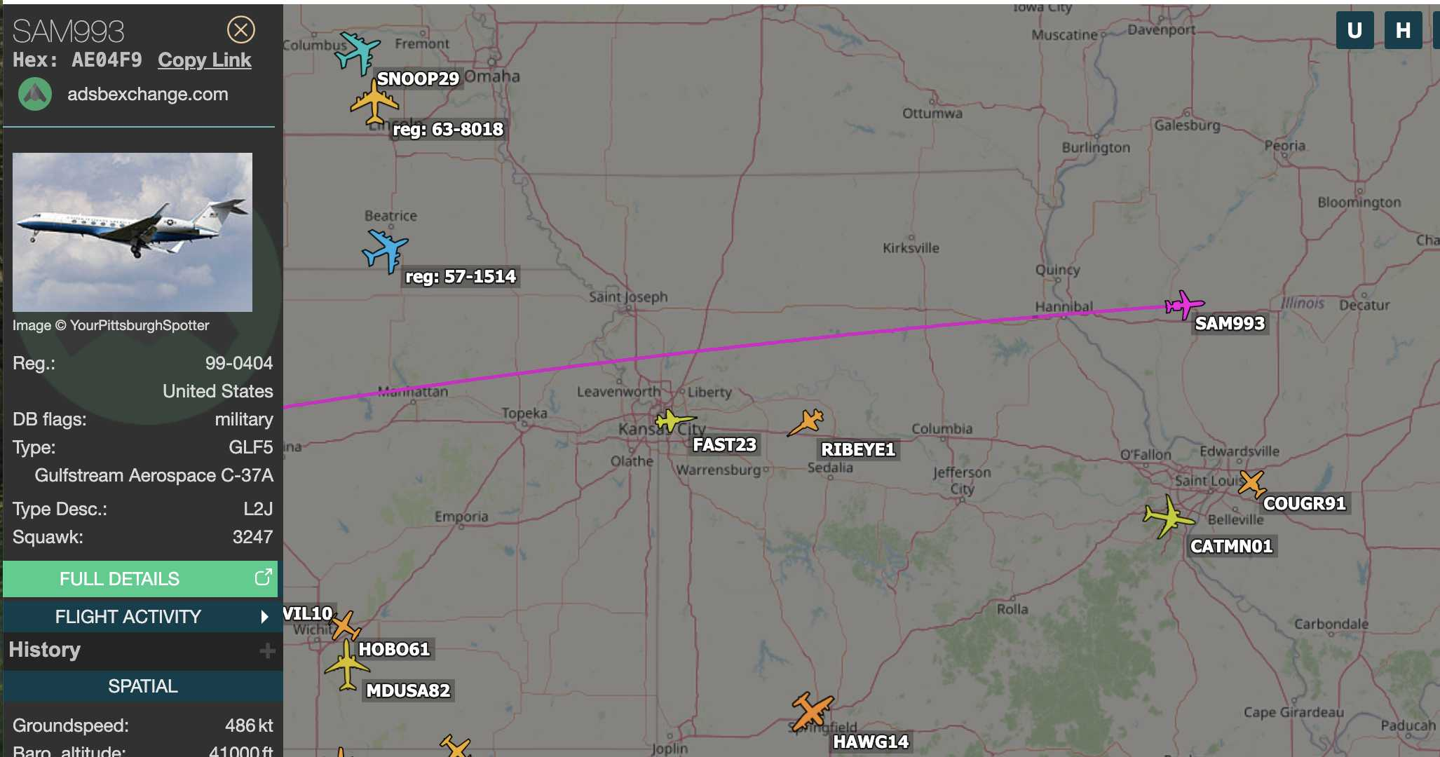 SAM993 heading NE out of CO Springs.