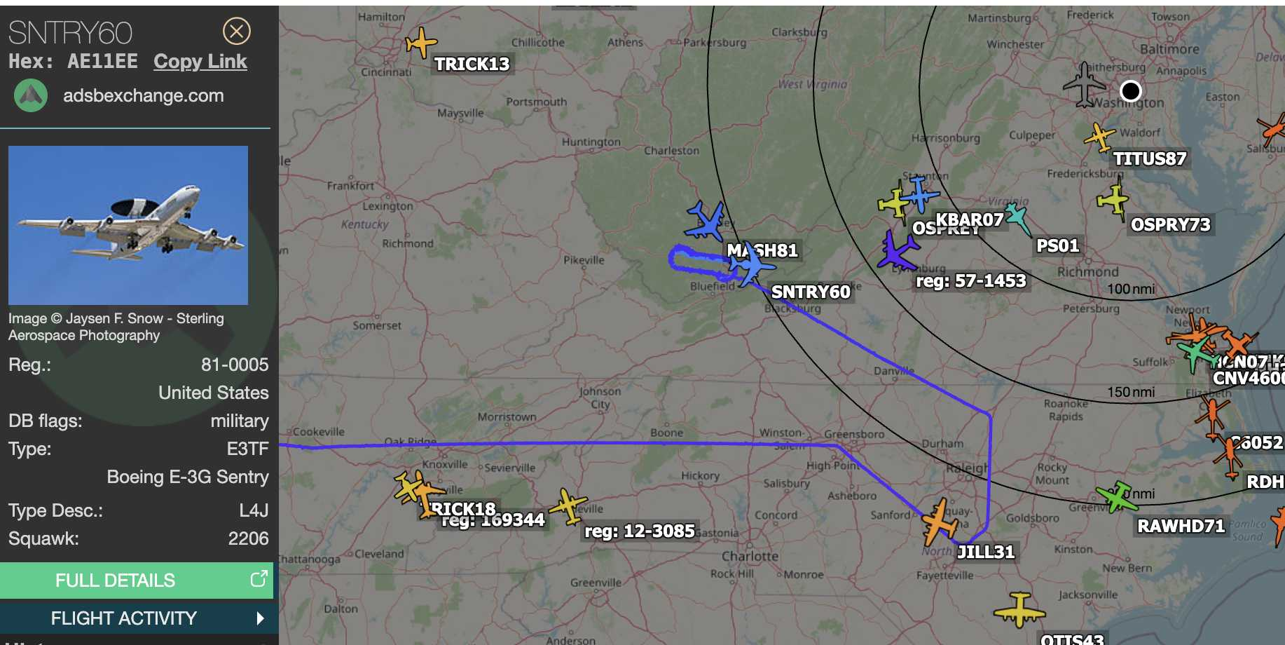 SENTRY60 up over NC & VA. Getting juiced up by a tanker.