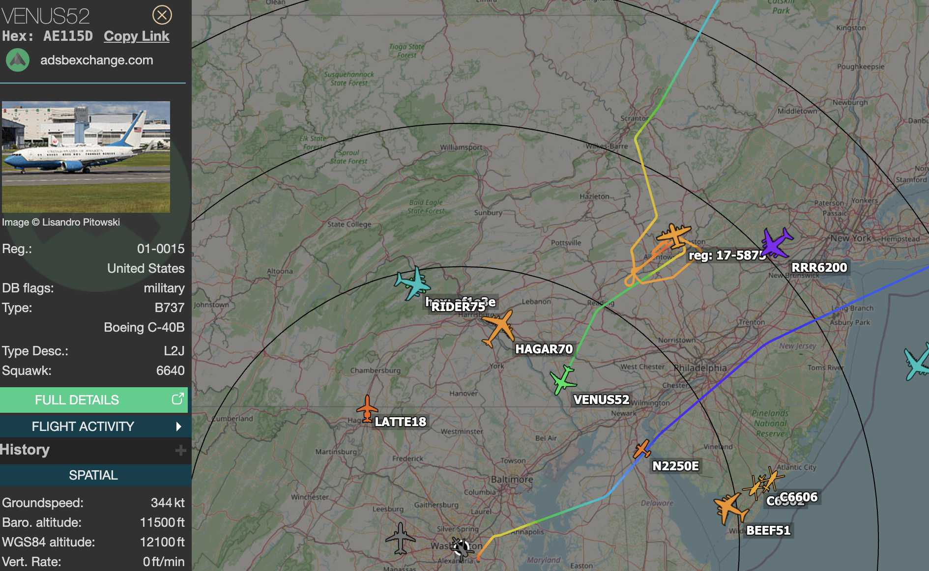 VENUS52 heading back to Andrews after landing practice at Lehigh Valley IAP and Rhode Island IAP.