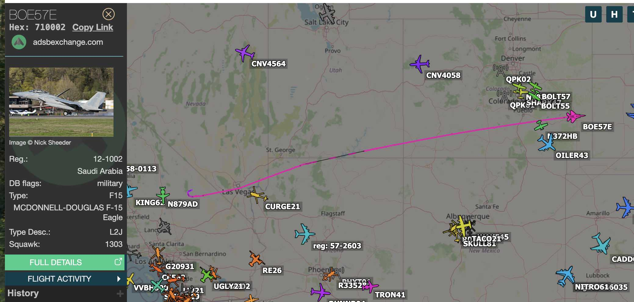 Saudi Arabian F-16 heading NE out of CA. Hmm!