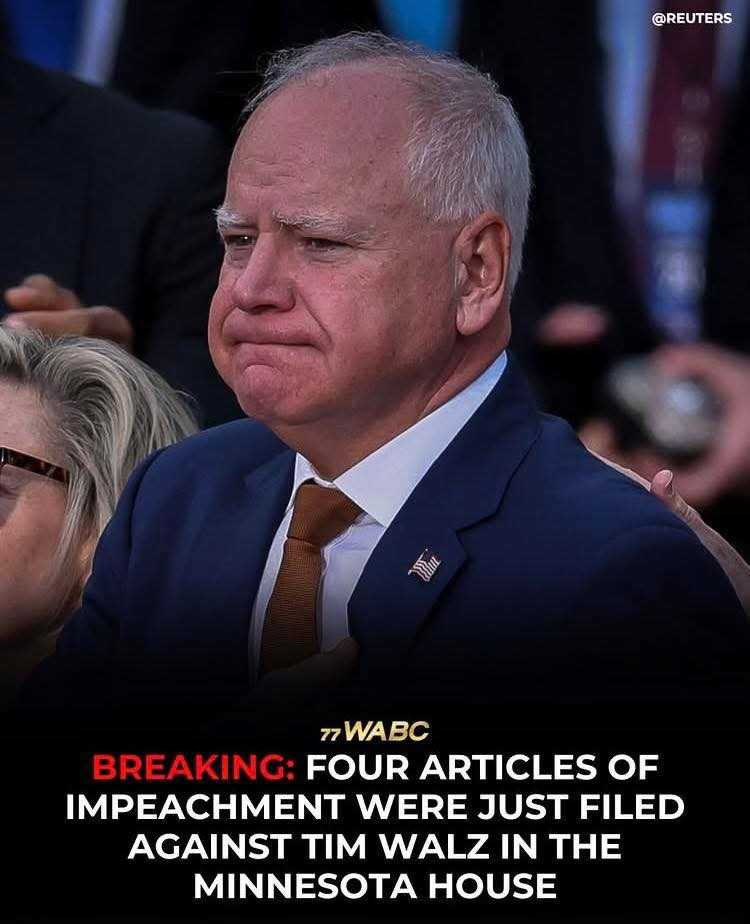 BREAKING: FOUR ARTICLES OF IMPEACHMENT just filed against Tim Walz in the Minnesota House, according to sources.